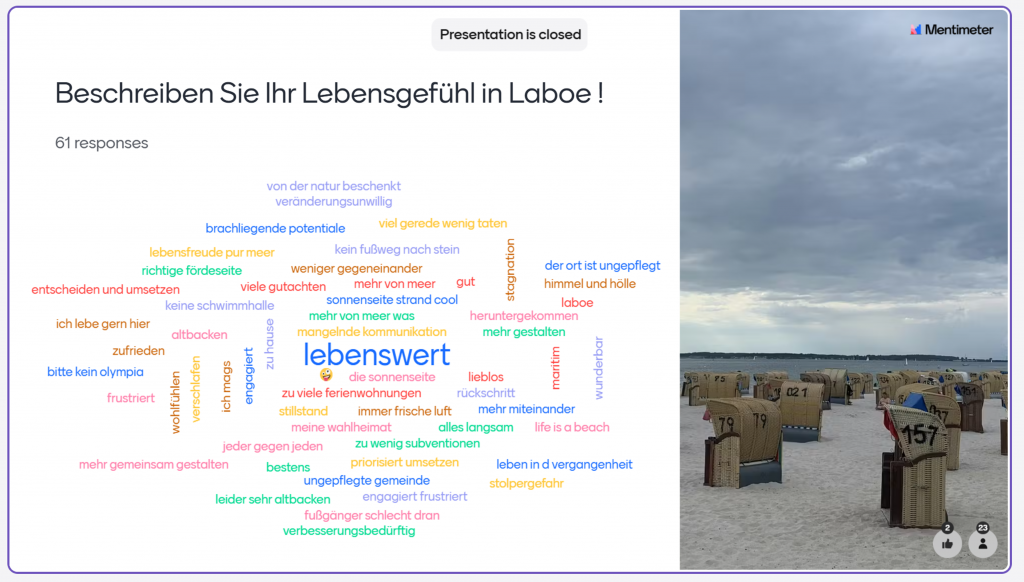 In einer Mentimeter Umfrage konnten die Besucher der Einwohnerversammlung per Smartphone ihr Lebensgefühl beschreiben. Lesenswert.